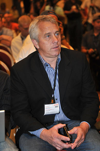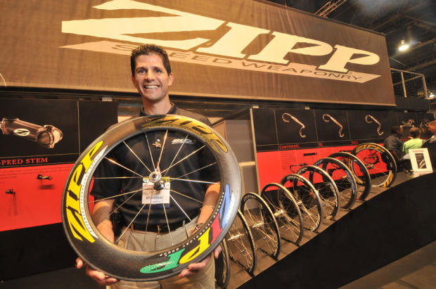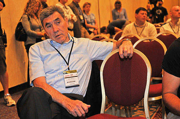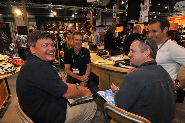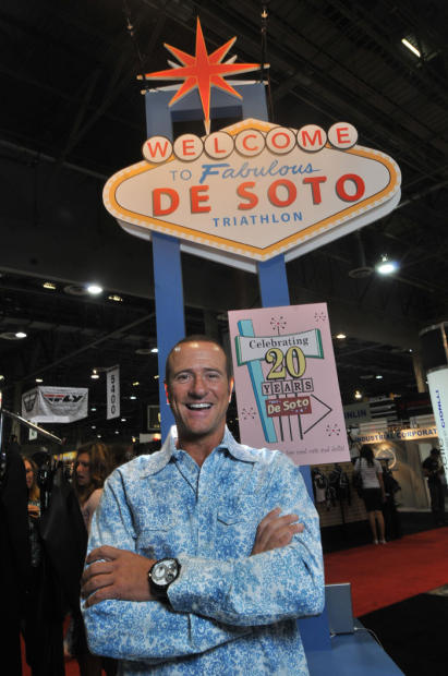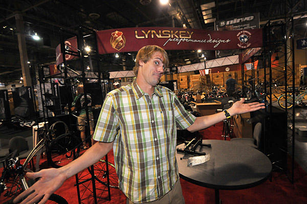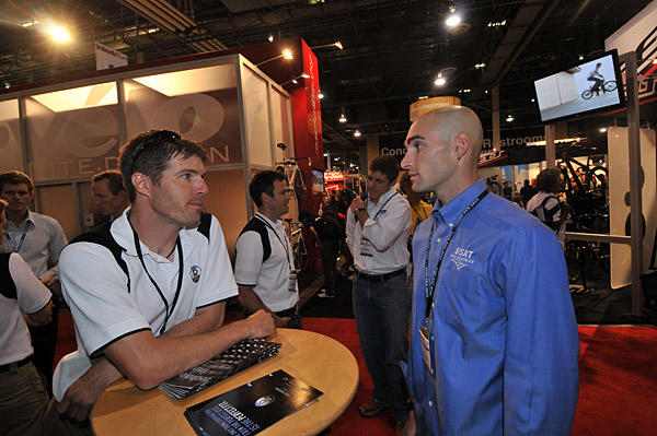 Emilio De Soto welcomes, Vegas style, visitors to his Interbike booth.