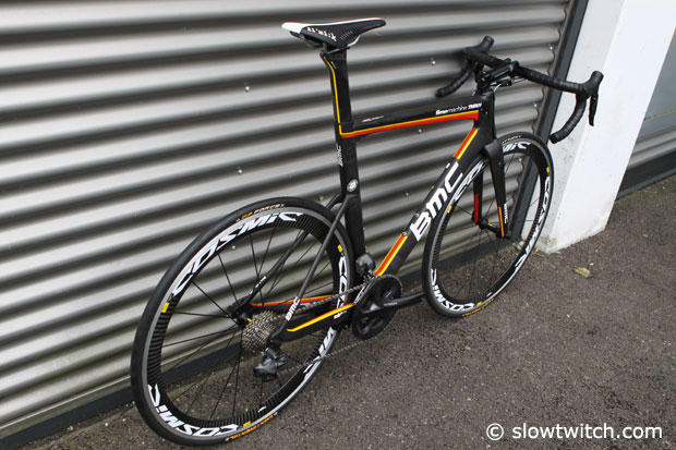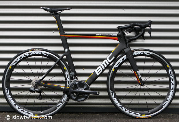 A few days ago we noticed the BMC timemachine TMR01 at Eurobike's Demo Day and today we looked closer at Shimano Ultegra Di-2 compact version of this stunning aero road bike.