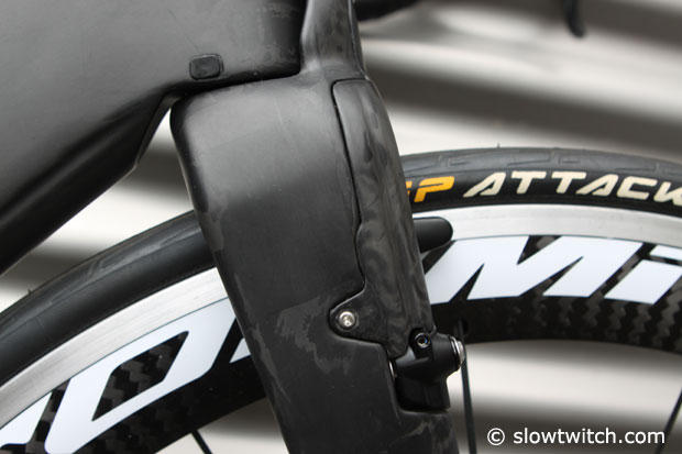 Just like on the TT version, the front brake is nicely tucked away, but it is a different brake.