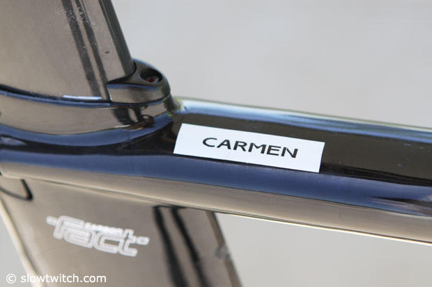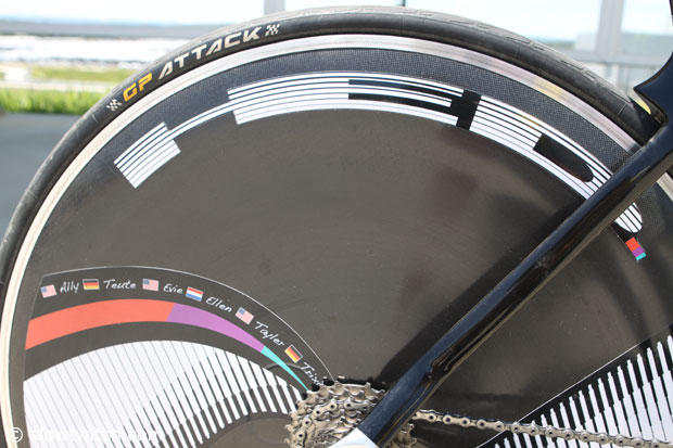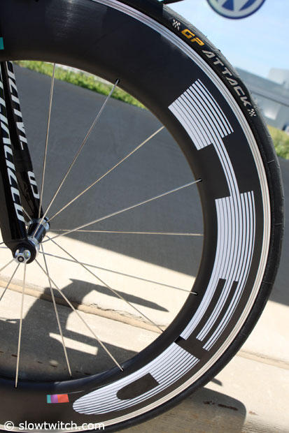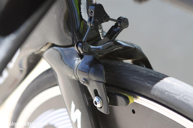 A closer look at the low front-end of Carmen Small's S-Works Shiv TT.