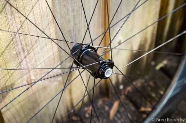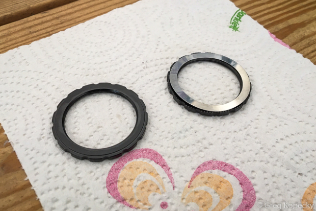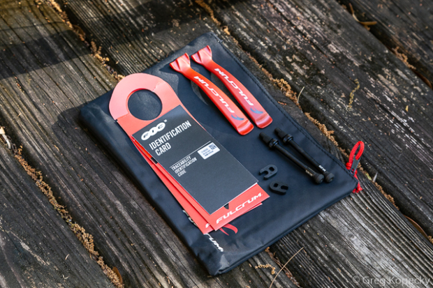 Fulcrum uses the Center Lock disc brake standard, and supplies their own low-profile lockrings. They snug down using a standard outboard-bearing bottom bracket wrench – but note that the narrow profile requires a steady hand to avoid slipping off.