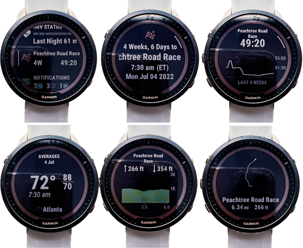 The Race Widget will be in your list of glances the next time you sync your watch. It gives you a summary, shows you a countdown to race day, race time prediction & chart, weather forecast, course profile, and course map. The race event also feeds the suggested workout algorithms, so Firstbeat is using this and all the other activity and performance data in the watch to dynamically design a plan to maximize your performance on race day. I did not use this enough to judge its efficacy. But, even if imperfect, it is insight into what will likely be fully automated training plan designs that come closer to a human coach.