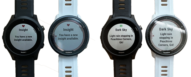 Garmin uses the slightly larger screen a few different ways. On the activity screens, the characters are a little larger and spaced out a little further, so they are easier to read. Notifications use a larger typeface, so they are much easier to read (though less text fits on the screen). And the watch faces can fit more complications without reducing visibility. The Forerunner 955 series gets the many other aesthetic and functional display updates in widgets, menus, and screen introduced in the products since the Forerunner 945. Overall, it seems to work a little more smoothly than its predecessor and the watch’s information is just a little more accessible. If you are blessed with presbyopia (reading glasses or bifocals), then this will be a nice upgrade.
