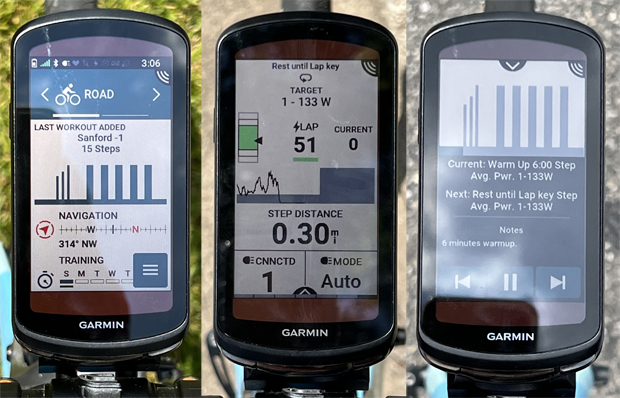 But this is not a huge rub. It is just my opinionated soap box. The Garmin Edge 1040 series is the top cycling computer overall on the market. And this is the one area I wish they would focus more developer energy. They did improve the secondary screen that shows what is ahead. And the buttons to pause or skip through intervals are fantastic. I used the pause several times. The other major challenge with outside bike workouts is that often the road ahead does not support the interval. So, the pause lets you suspend the interval without stopping the timer. Then, when the road is right, un-pause and ride the interval. Bingo. For these rides, I used workouts from my TrainerRoad plan. But Garmin has its own workout builders, plus you can import them from any other workout builder platform.