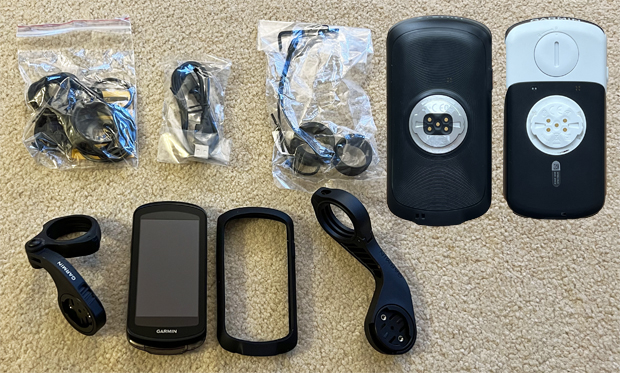 The 1030 comes with loads of accessories. It has the traditional out-front mount plus a shorter adjustable mount for any other orientation, including time trial bike extensions. Then, it has a strap-on stem mount with many adapters, a lanyard, a protective silicone case, and a USB-C cable for the new port. Garmin is giving you everything you need to mount it anywhere and then keep it safe once it is there.