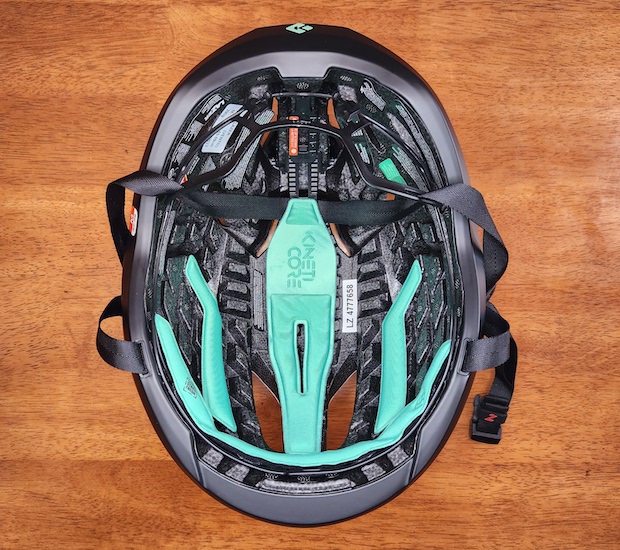 Kineticore essentially refers to the design of the material of the helmet. It features direction-specific crumple zones to minimize direct and rotational forces upon impact. A side benefit of removing EPS foam material to create these crumple zones led to using less material overall (lighter weight) and adding vents to increase airflow.