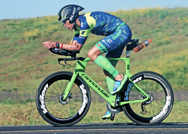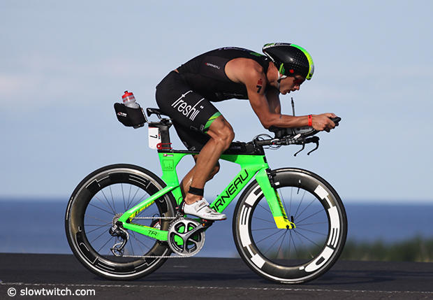 Why do I dare write that about Ronnie? He rides so well! Yes. And so did Lionel Sanders last year in Kona. But look at this photo above. This is Lionel in Oceanside. Below is Lionel in Kona last year and let's talk about this for a moment.