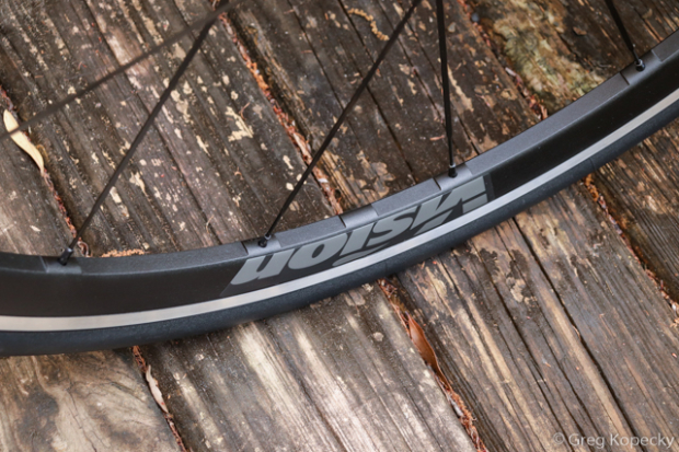 Vision hits an interesting mix of options in their aluminum line, with 25mm, 30mm, and 35mm depths. Additionally, they have machined braking surfaces, or an all-black “KB” coated rim. I’m testing the 35mm depth with standard aluminum surface, and measured it to be 22.5mm wide, 0.5mm wider than advertised. The depth is a little bit misleading, as the 35mm measurement only occurs right at the spoke holes, and is milled out in-between for weight savings (shaving a couple millimeters of depth).