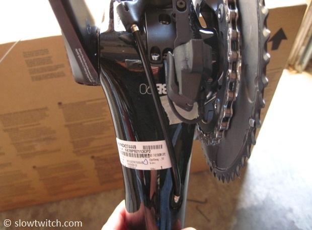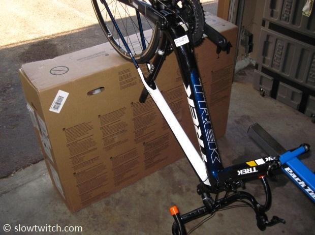 The bike I’m working with is a new 2013 Trek Madone. Historically, I like the Madone. In fact, I owned one of the first-model-year Madones (which was originally an ‘aero’ version of the 5900). It had a round seatpost that plugged into a seat tube that looked like a shark fin. I built it up with Campagnolo Chorus 10-speed, the then-new Fizik Aliante, and silver Elite bottle cages that matched the frame. And of course – white bar tape.