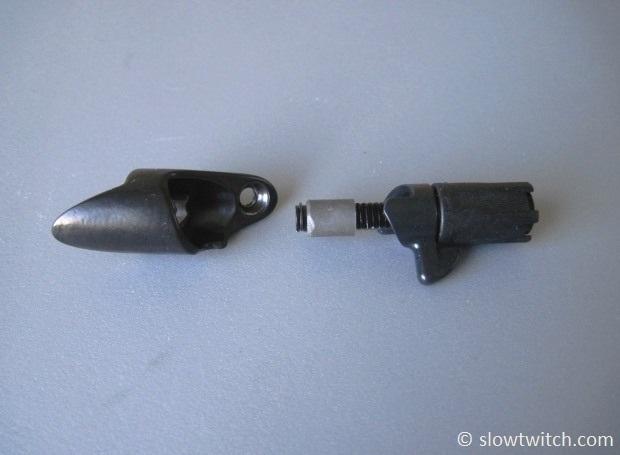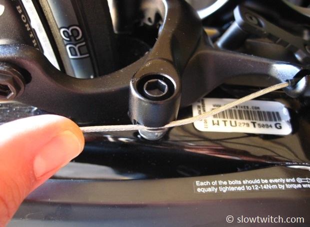 The rear cable anchor bolt is also unique. Seen in the photo below, you must slide the cable in to the slot. Then you tighten the 5mm bolt on top, which threads in to a hex nut underneath.