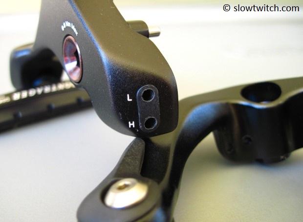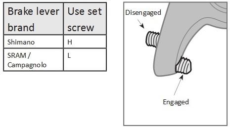 I’m using Shimano Ultegra Di2 levers, so that means I unthread the L screw, and thread in the H screw before mounting the caliper. If I was using SRAM or Campy levers, I’d thread in L, and unthread H.