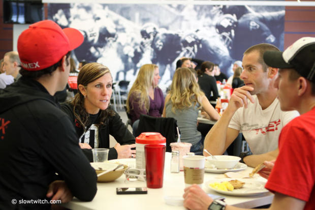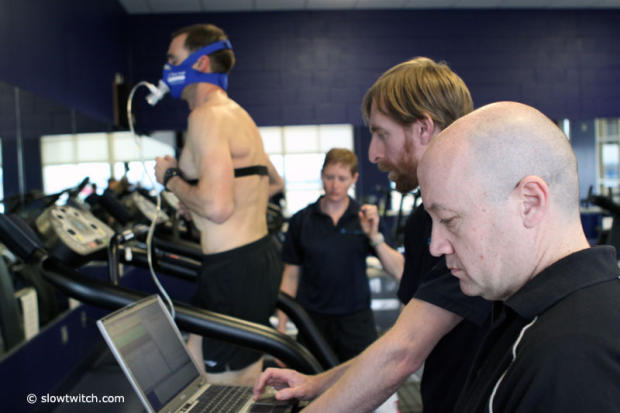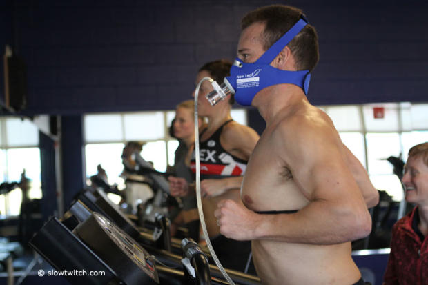 Tim Hola was first to get the VO2 testing done as Chris Kinney, Dominic Gillen and Suzie Snyder from TargetTraining look on.