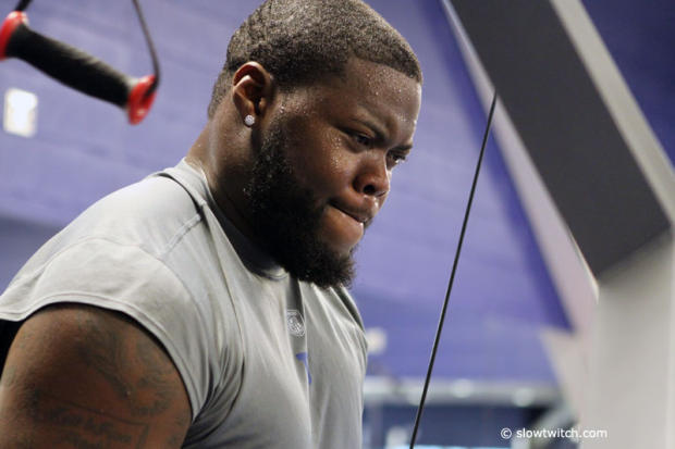 Not too far away Linval Joseph of the New York Giants is working out with some serious weights and quite a bit of determination.