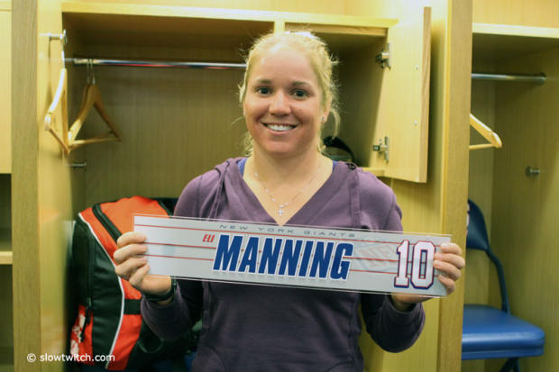 The gear of Laura Tingle was inside Eli Manning's locker.