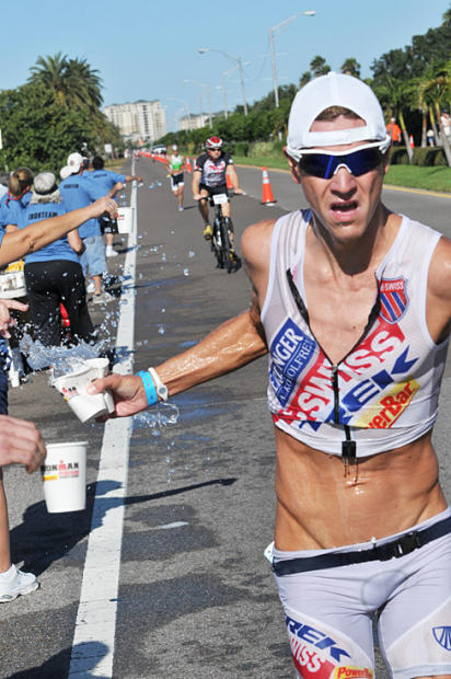 Michael Raelert showed the strain of defending his world crown on Mile 8 of the run. Looking like nothing so much as triathlon's version of Edward Munch's classic painting, "The Scream."