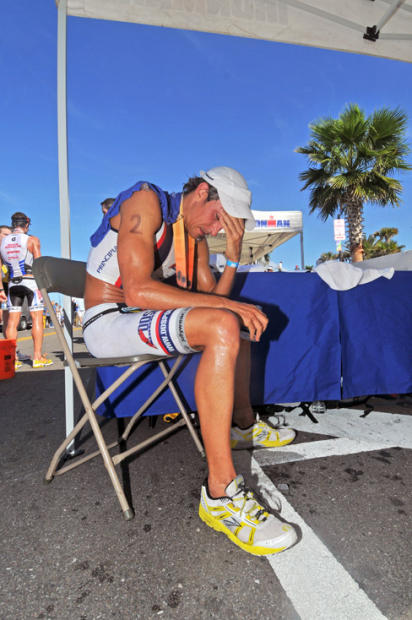 Defending champ Julie Dibens posted a second-best women's bike (2:16:19) split behind Heather Jackson's 2:16:03. But it still left her a minute down to Swallow at T2. Tired after Kona and Maui, Dibens faded to 8th with a 1:35 run.