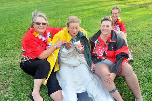 Alice Robb of Australia is well taken care of by her support crew after an exhausting 9:43:17 split spent fighting the winds.