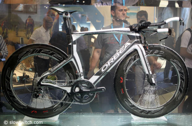 Orbea is displaying their new Ordu in a tank, and rumor has it that they were struggling to sink this beauty.
