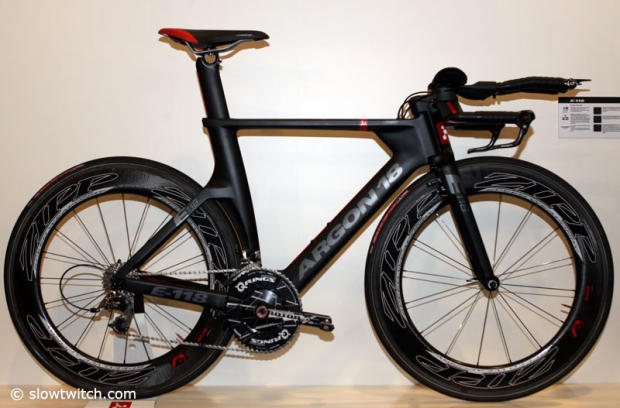 The 2013 Argon 18 E118 has red highlights that sadly aren't visible from this angle, but you can take our word for it.