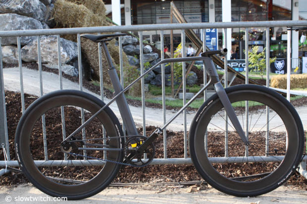The very petite and beautiful Canyon Aeorad CF of Joaquim Rodriguez is displayed in the Canyon booth. Well, one of them is. He is currently leading the Vuelta on another one.