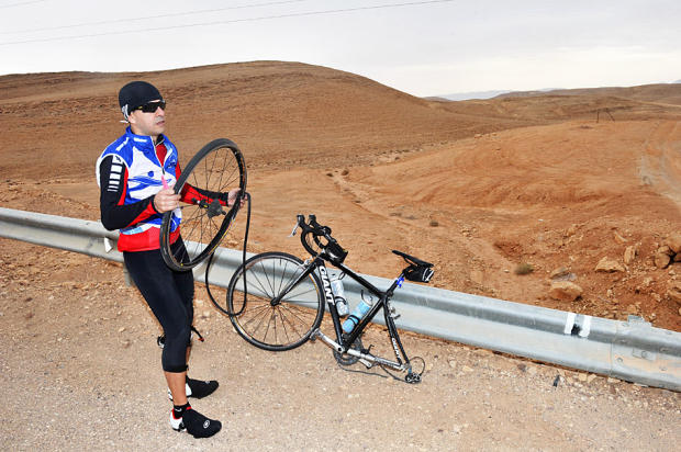 Anders Stampe runs a mile to T2 with a broken chain. The 31-year-old Danish triathlete finished just 5:57 back of the Half Israman winner Lior Zach Maor.