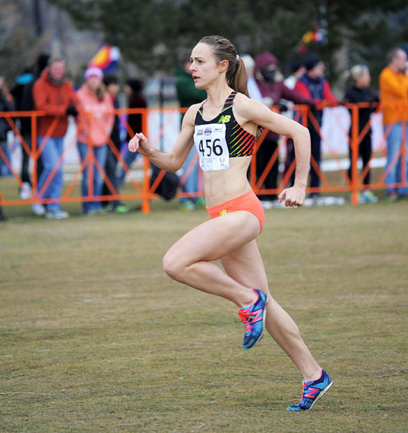Jenny Simpson (456) sprints to a second place finish in 27:57, 4 seconds ahead of third place finisher Mattie Suver (460).