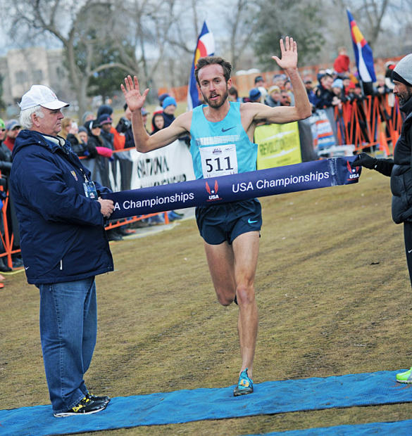 Chris Derrick of Colorado Springs defends his USA Cross Country National title title with a 36:14 time for the 12k course.