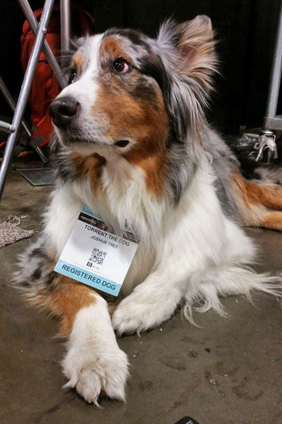 Torrent the Australian Shepherd drew lot of folks into the Joshua Tree booth.