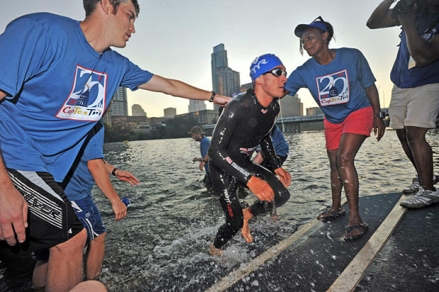 A year after an ITU race served as the centerpiece of the festivities, the Cap Tex Tri reverted to its age group roots. The elite wave was won by new pro Nathan White and Austin native Sienna Snyder. The key charity was the Wounded Warriors Project, and several wounded veterans joined the 3,000 age groupers celebrating Memorial Day with a joyous swim, bike and run on a sizzling hot Texas Monday.