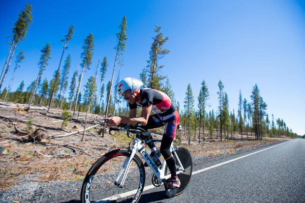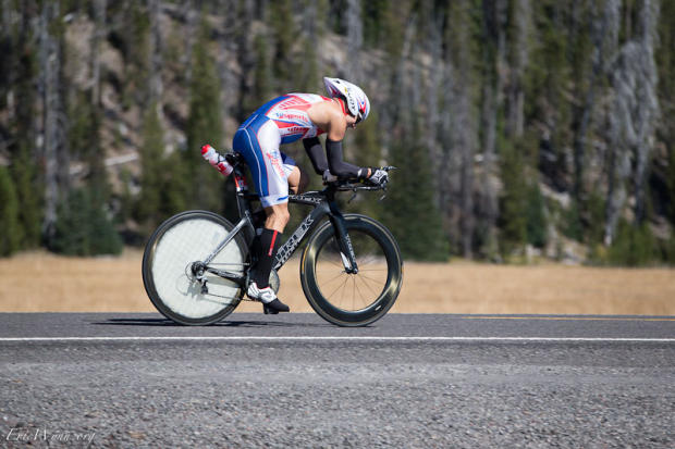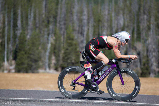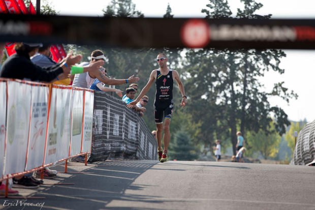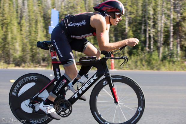 Jordan Rapp rode a race best bike split of 5:43:44 for the 223k bike segment and reached T2 in first place.