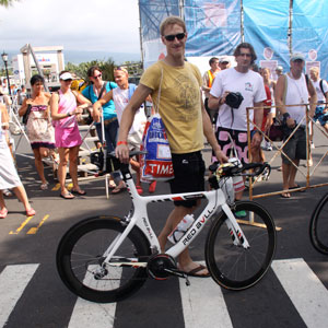 Stefan: I am 196cm (6 feet, 5 inches) at 202lbs. This year on Kona´s podium the situation for me was quite nice. The guys right beside me were nearly as tall as me. But last year I was in 3rd place and was more than a head taller than the guys to the left and right. That was quite a funny situation for us. Kona is hard to finish in a good time for tall and heavy guys.