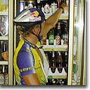 Riders were queueing up at the store at the bottom of the hill (the traditional start), refilling bottles with cold water. I asked Zack for a picture of him re-filling, and he went straight for the beer aisle. But I know that was in jest, because day-before-yesterday was the traditional Zack alcohol-swear-off-bash, and he's now officially tee-totaling through October 14th.