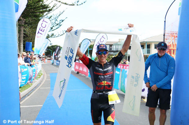Braden Currie and Amelia Rose Wilkinson defended their 2016 titles at the 2017 Port of Tauranga Half Saturday at Mount Maunganui.