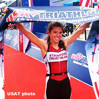Stanford undergraduate Marissa Ferrante dominated the individual women’s race at the USA Triathlon Collegiate Nationals. Ferrante crossed the line 1st in 2:06:28 with a 5:20 advantage over the runner-up, Duke grad student Jenny Shaughnessy, and 5:50 over 3rd-place finisher, University of Alabama–Birmingham grad student Hallie Blunck.