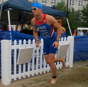 Jared: Sure. I guess in triathlon I'd be categorized as a "swimmer." But I grew up playing soccer mostly (it happens when you have English parents) and always loving cycling (I can still remember watching Greg Lemond on ABC's Wide World of Sports.) I was never far from the water as a kid though, and have always been swimming during the summers with the local recreational team. When I got into high school I decided to follow swimming more seriously, had a couple of very influential coaches and then was fortunate enough to have the opportunity to swim in college. The summer after my swimming career was over I bought myself a bike and rode across the country. When I got back I entered my first triathlon, and I guess here we are!