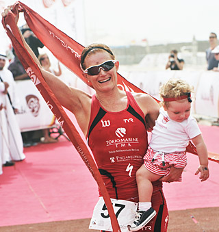 Butterfield, who carried young daughter Savana over the line, electrified the tri world with a rush to the lead via a devastating bike at the $1 million Hy-Vee Triathlon last summer. While she faded to 4th place in Iowa, Butterfield closed the deal at one of the sport's most prestigious new titles with another great bike and a gutsy run that gave her time to luxuriate in the applause at the finish and contemplation of the $50,000 she had richly earned.
