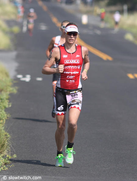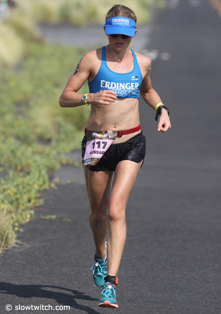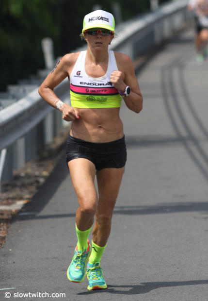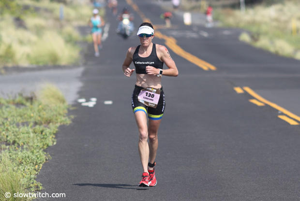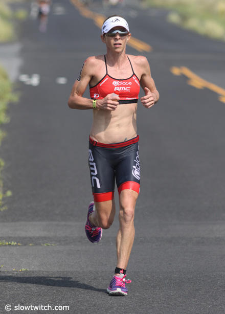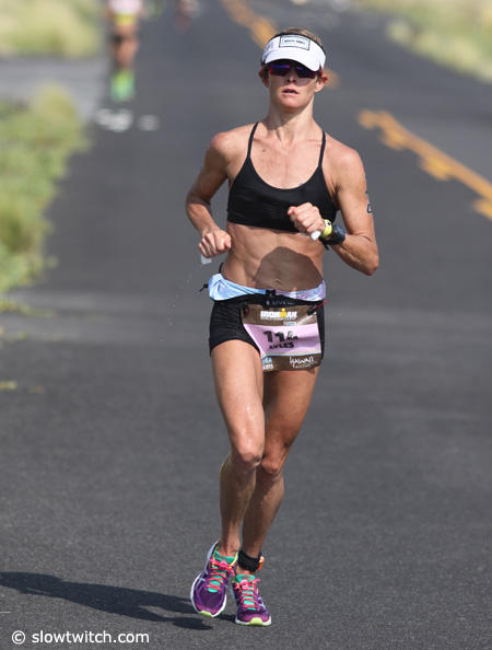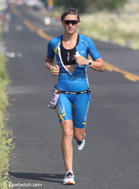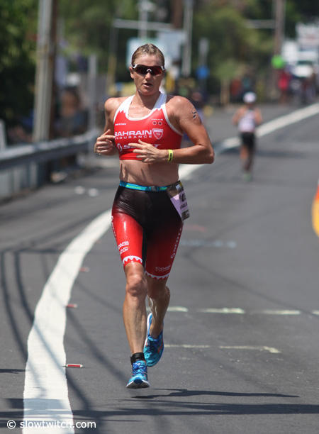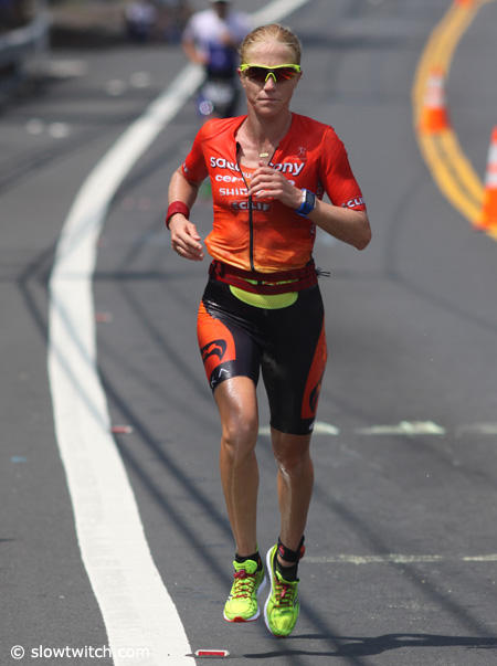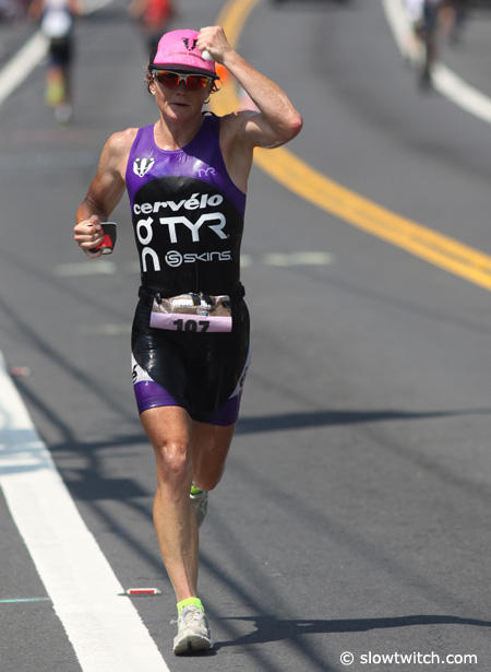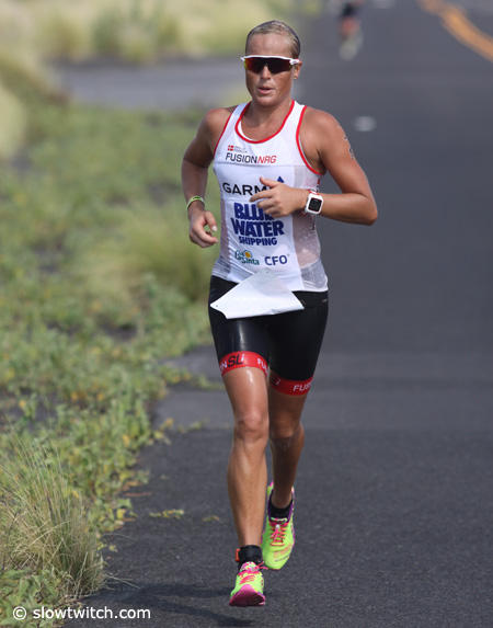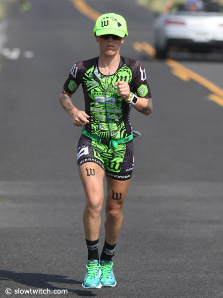 Caitlin Snow who is well known for her running prowess only managed a 3:24:44 run on this hot day in Kona.