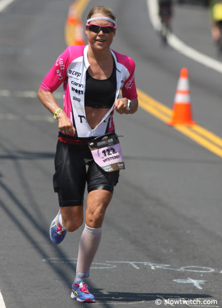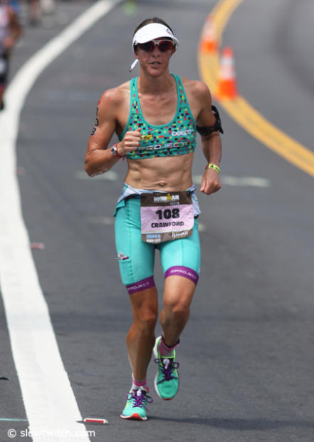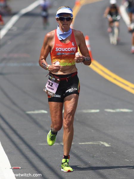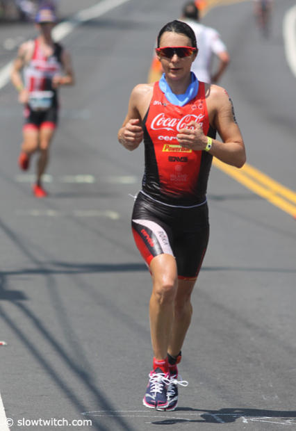 Mary Beth Ellis was in good position after the bike segment, but fell back to 13th place with a 3:33:37 run.