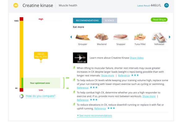 Its online layout is easy to read and its nutritional recommendations to optimize a customer’s biomarkers can be customized by food or diet preference.