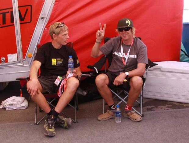 Dave Wiens and Greg Herbold relaxing in the SRAM booth