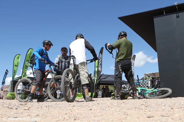 The 2015 Interbike trade show started today with the Outdoor Demo. The outside action continues tomorrow in Boulder City, NV, but we will be moving inside. Here now is what we noticed today at Outdoor Demo, where it was busy, colorful and windy.
