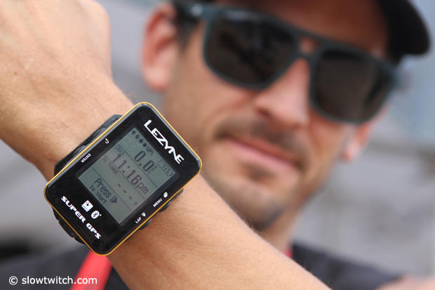 Dillon Clapp of Lezyne sports a fancy watch the company designed out of their new Super GPS – and it is still on Eurobike time.