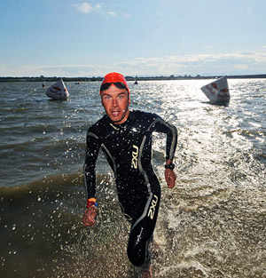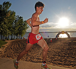 On this Labor Day weekend, a group of 400 triathletes and duathletes were competing with water skiers and sunbathers and picnickers for space at the Cherry Creek Reservoir during the day. And at night, after the quarter-mile swim course was closed for safety, they donned coal miner-style headlamps to charge around a 11.2-mile bike layout and a 2.6-mile run course trying to tote up more laps than the rest of their slightly unhinged colleagues.