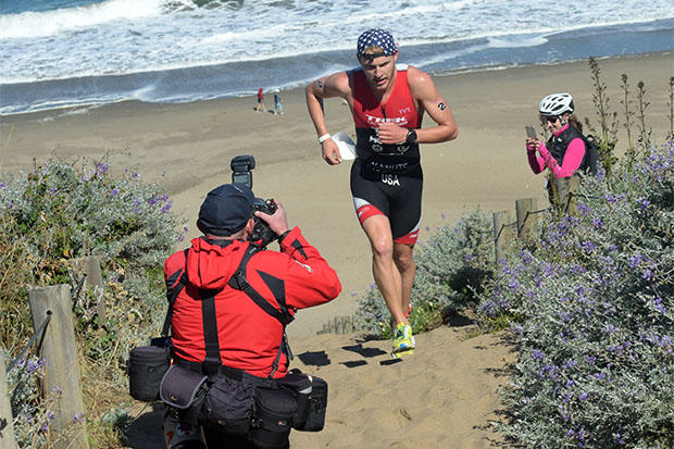 West started with a 1:26 deficit to Cameron Dye after the swim, lost another 55 seconds to Dye on the bike leg, then made up 7 seconds at T2. West then made up 2:22 on his fellow Boulder Coloradan with a race-best 31:13 run that brought him to the finish in 1:46:10 with an 8 seconds margin of victory on Dye (33:38 run) and 11 seconds on 3rd place finisher Eric Lagerstrom of the U.S. (32:26 run).