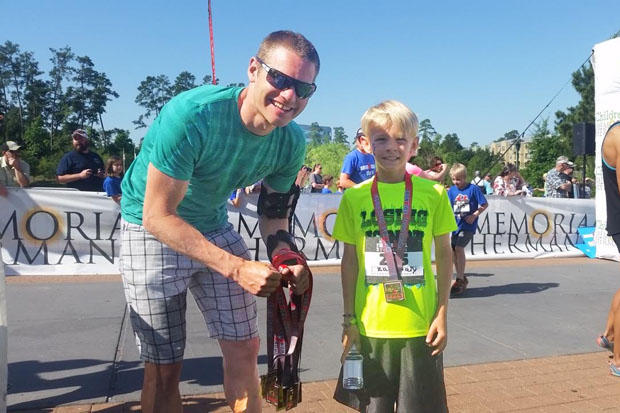 Symonds and fellow pro Emma-Kate Lidbury handed out finisher’s medals at the IRONKIDS 1-mile run this past Saturday.