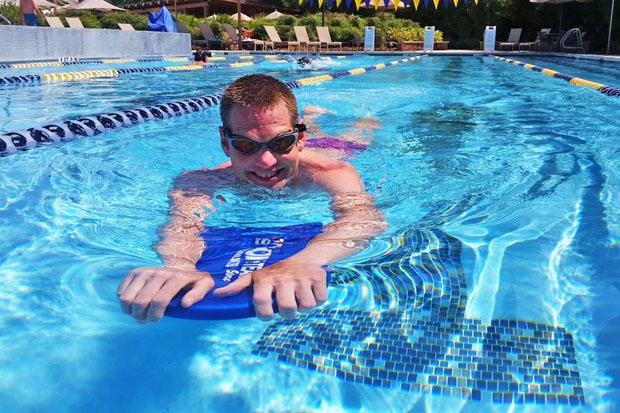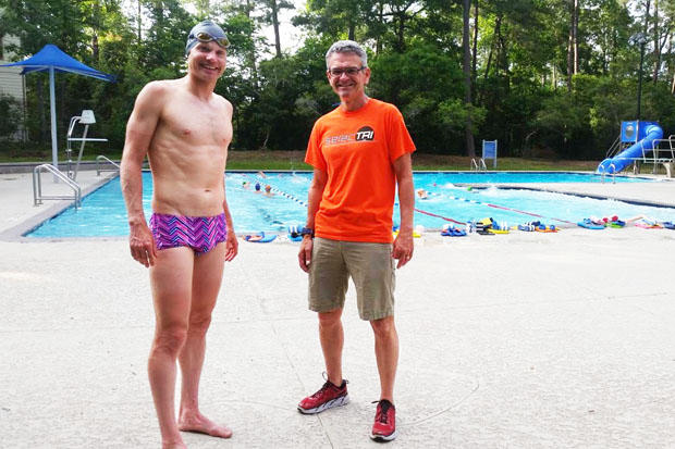 Within an hour of landing in Houston, Symonds was on the pool deck for an easy swim to shake off the day of travel. The session was coached by his homestay Dana Lyons, who owns coaching groups Finish Strong and SelecTri, a team for youth and juniors athletes.