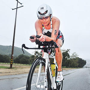 Melanie: I think it was Meredith Kessler because she was out in front. I caught her when we were at that bike path that leads up to Dana Point [about Mile 16]. Then I was kind of on my own.