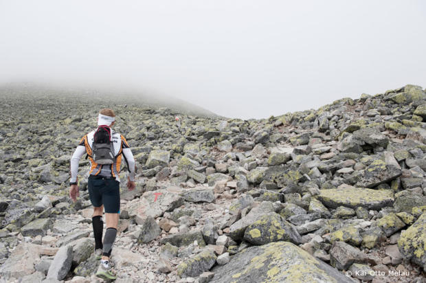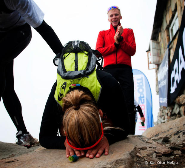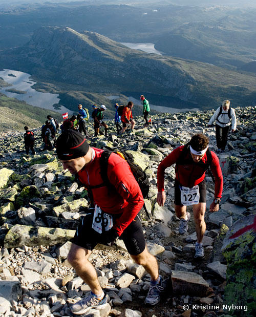 Defending champion Tom Remman reaches the top of Imingfjell.