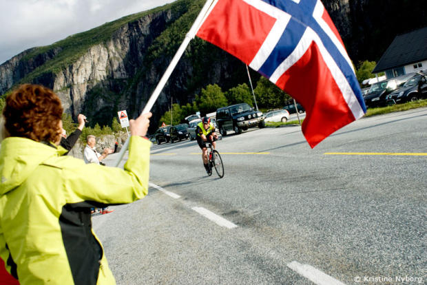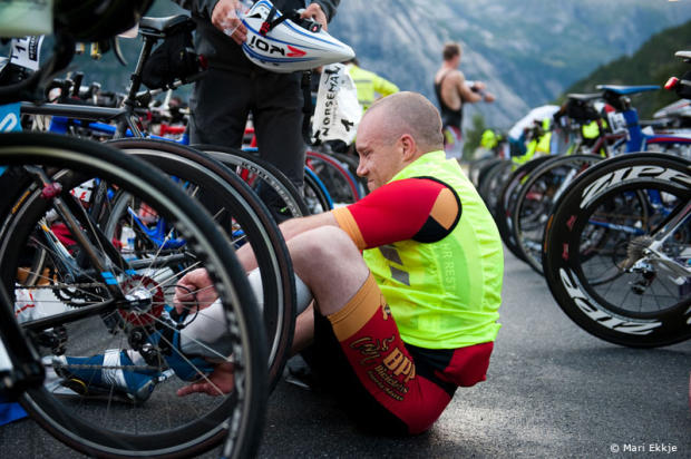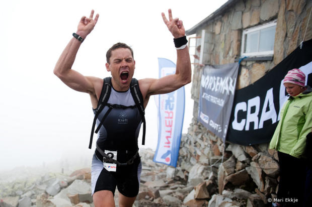 227 participants from 23 nations jumped into the water from a car ferry in the early morning at 5am. They swam 3.8 kilometers towards Eidfjord (Hardanger) before they mounted the bikes for 180 tough kilometers across the Hardanger mountain plateau. At Austbygde they changed into their running shoes and set out for a full marathon of 42 kilometers. The final leg went to the township of Rjukan before they started the steep climb toward the finishing point at Gaustatoppen 1883 metres above sea level. The total climb of the day was 5000 meters. The winners get black T-shirts and 210 participants finished the race.
