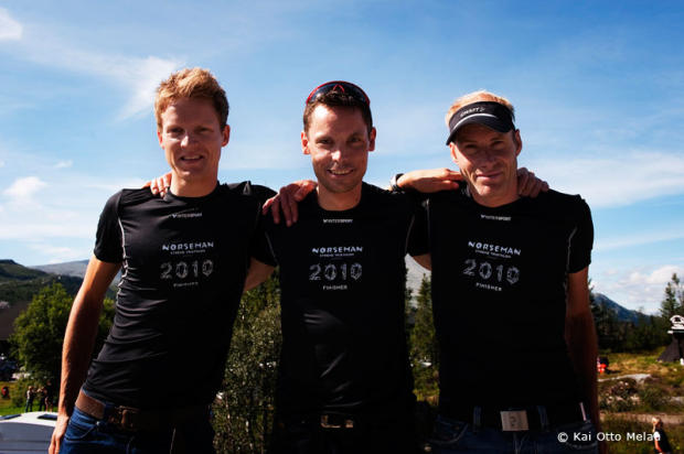 What a difference a day makes. Top 3 finishers Even Hersleth, Henrik Oftedal and Tom Remman proudly wear the black finisher's shirts.